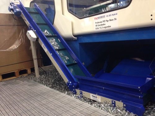 Equipado com correias de rolamento em policloreto de vinila (PVC), consegue transportar mercadorias pesadas para níveis superiores. Tem ainda regulagem de altura para uma operação mais segura e confortável, fazendo o transporte de forma eficiente. O equipamento tem baixo custo de manutenção e capacidade de atuar de forma contínua na movimentação industrial de mercadorias de diversos perfis e pesos elevados.